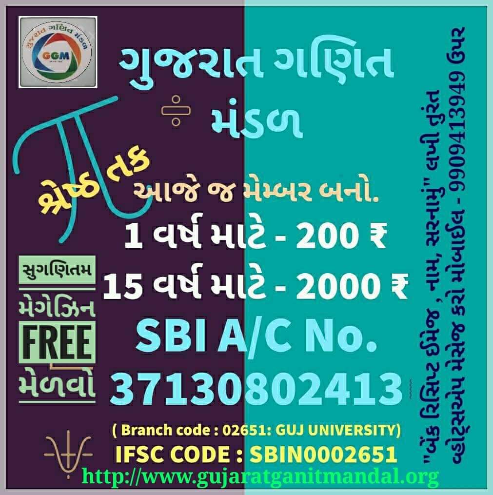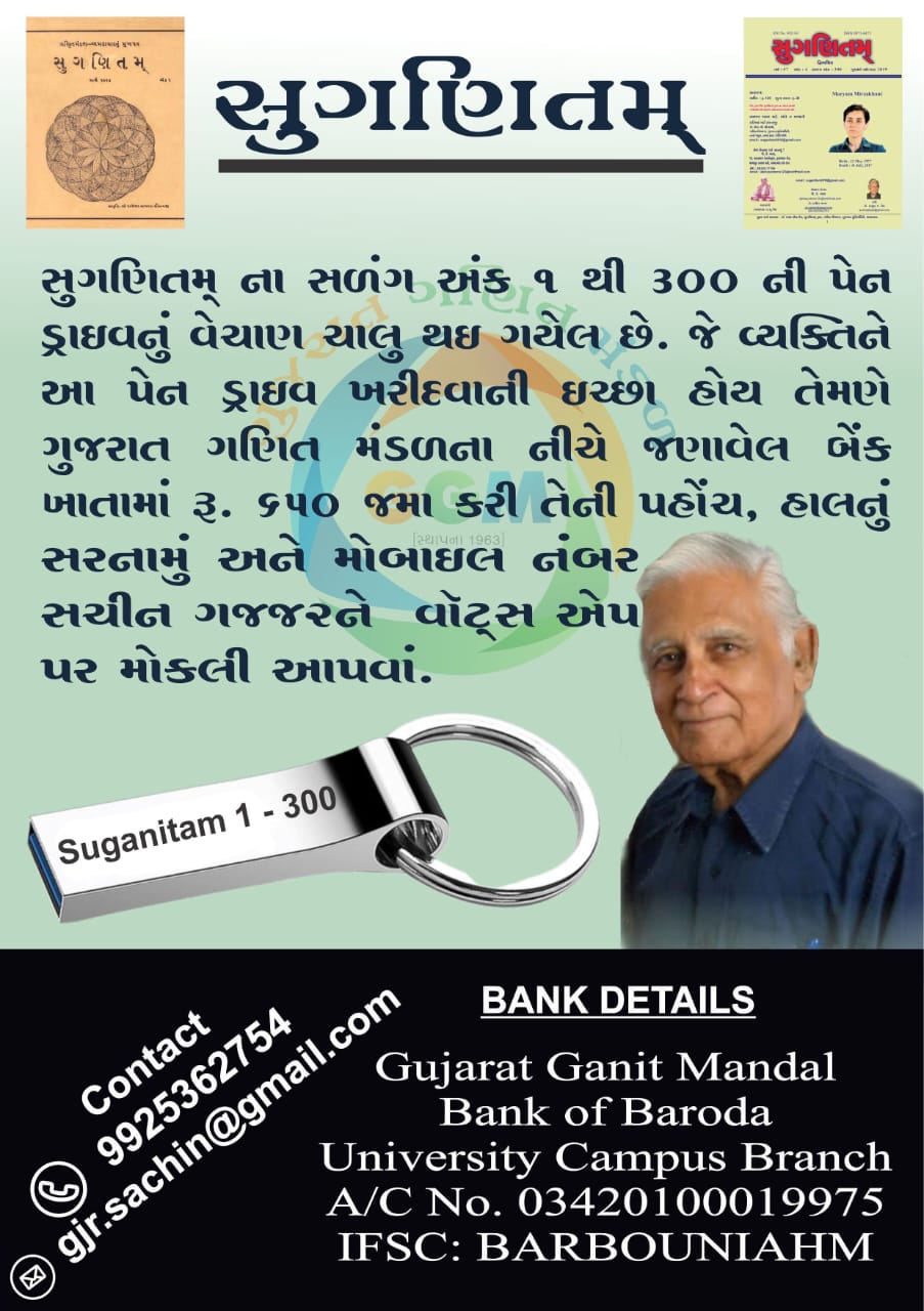 ગુજરાત ગણિત મંડળના પ્રમુખ તરીકે ગૂજરાત વિધાપીઠ કુલપતિ અને ગણિત શિક્ષણ પધ્ધતિના અધ્યાપક ડો. હર્ષદ પટેલની વર્ષ ૨૦૨૫ માટે વરણી કરવામાં આવી છે.